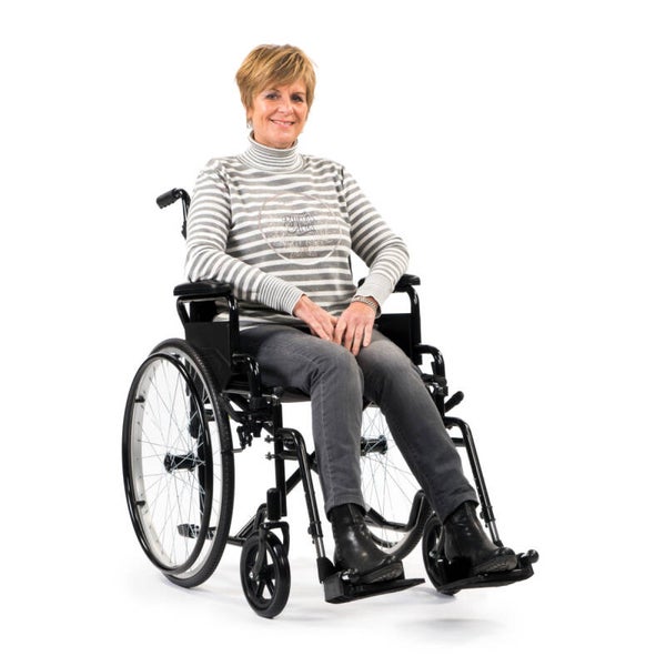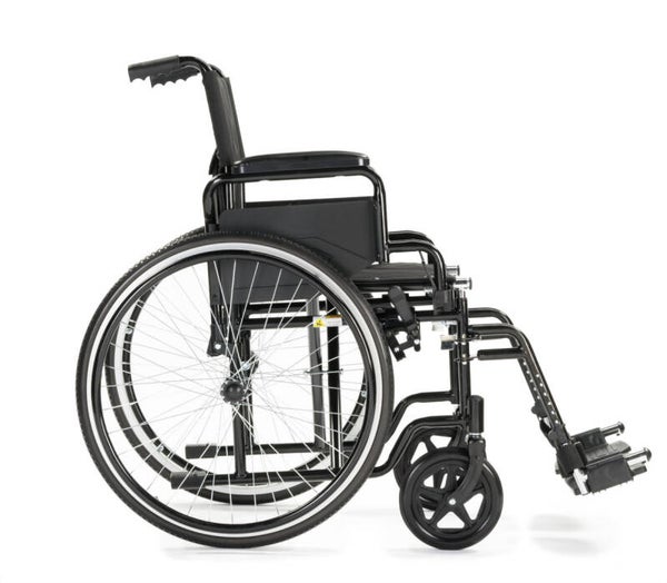 De MultiMotion M1 is de ideale, complete basisrolstoel voor korte uitstapjes. Deze stalen rolstoel is verkrijgbaar in de kleur zwart en standaard voorzien van afneembare en in hoogte verstelbare voetsteunen. De MultiMotion M1 is uitgerust met een Nylon, 4 mm schuim gevulde zitting.