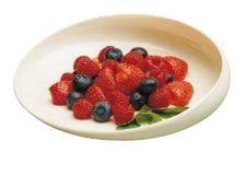 Een plastic bord met lage voorkant en hoge achterkant. Ideaal voor éénhandig gebruik en personen met beperkte motorische coordinatie. Inclusief rubberen anti-slip dopjes.