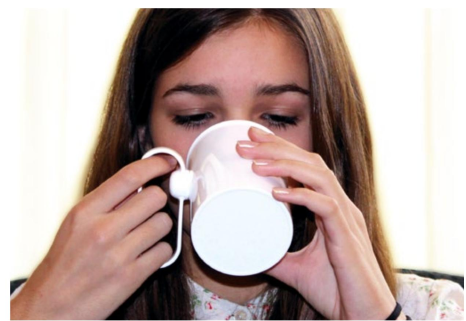 De HandSteady is een drinkbeker met een draaibaar handvat waardoor de beker met behulp van de zwaartekracht recht blijft, zelfs bij tremoren.