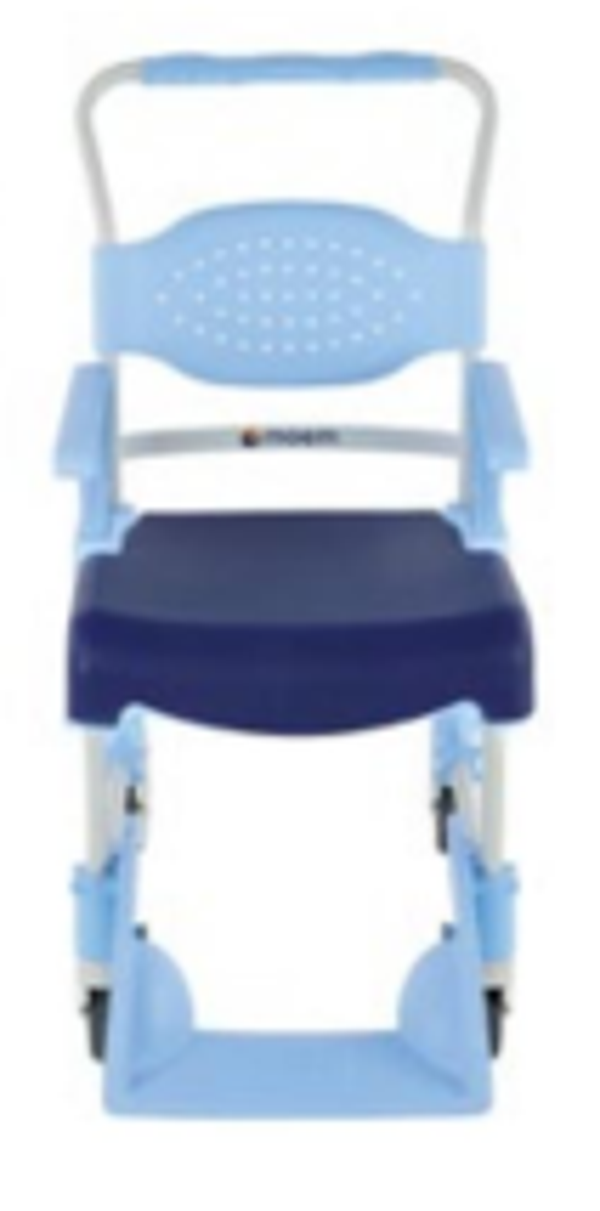De mobiele douche- en toiletstoel is licht en gemakkelijk te manoeuvreren mede door de ergonomische handgreep en wendbare wielen. Inclusief ergonomische rugleuning en comfortabele zitting.