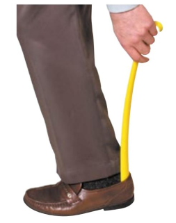 Schoenlepel met ge en handvat voor een com ortabele grip. De haak kan gebruikt worden om sokken op te trekken.